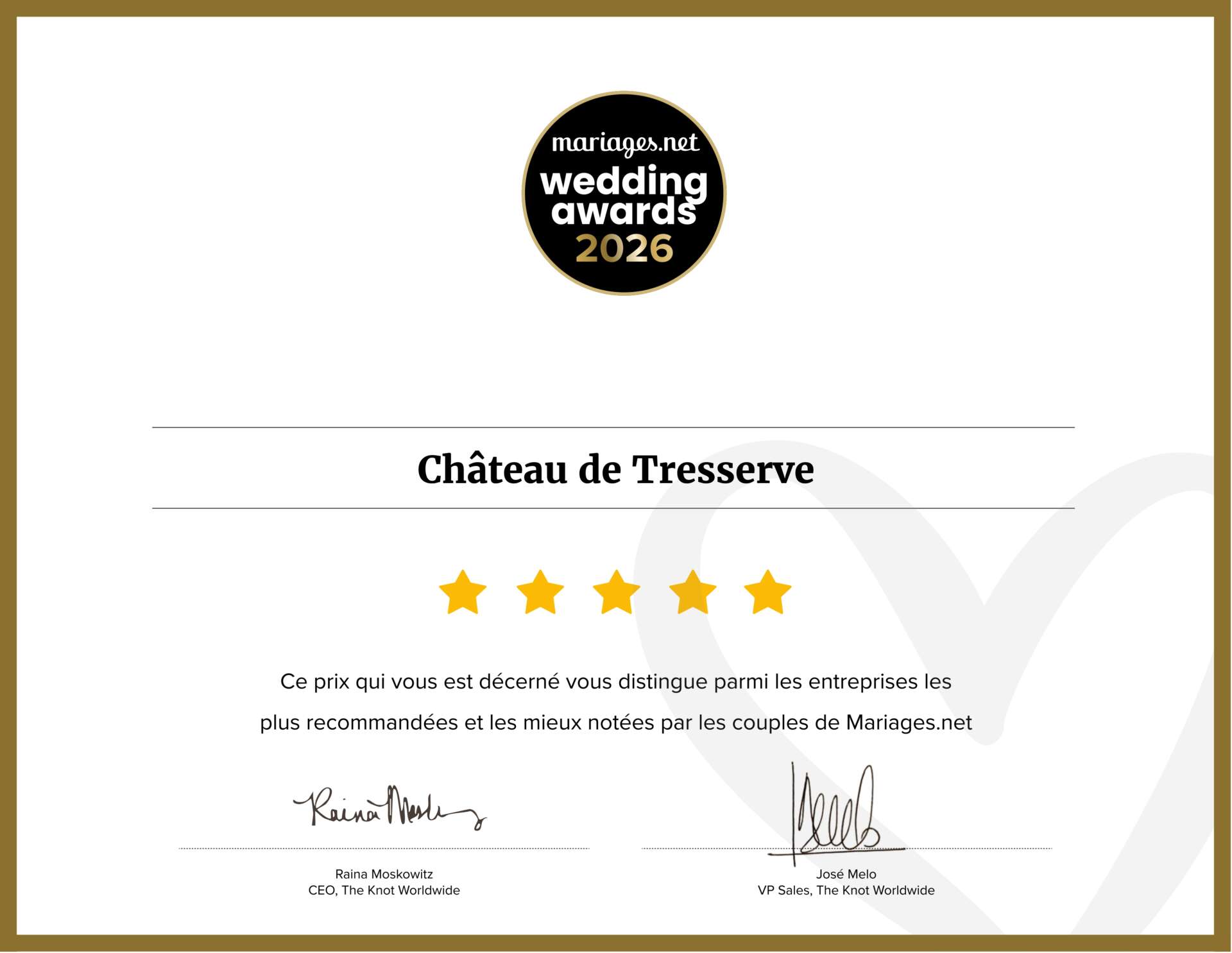 Le Château de Tresserve remporte le Wedding Award 2026 C’est avec une grande fierté que le Château de Tresserve annonce l’obtention du Wedding Award Lire la suite »